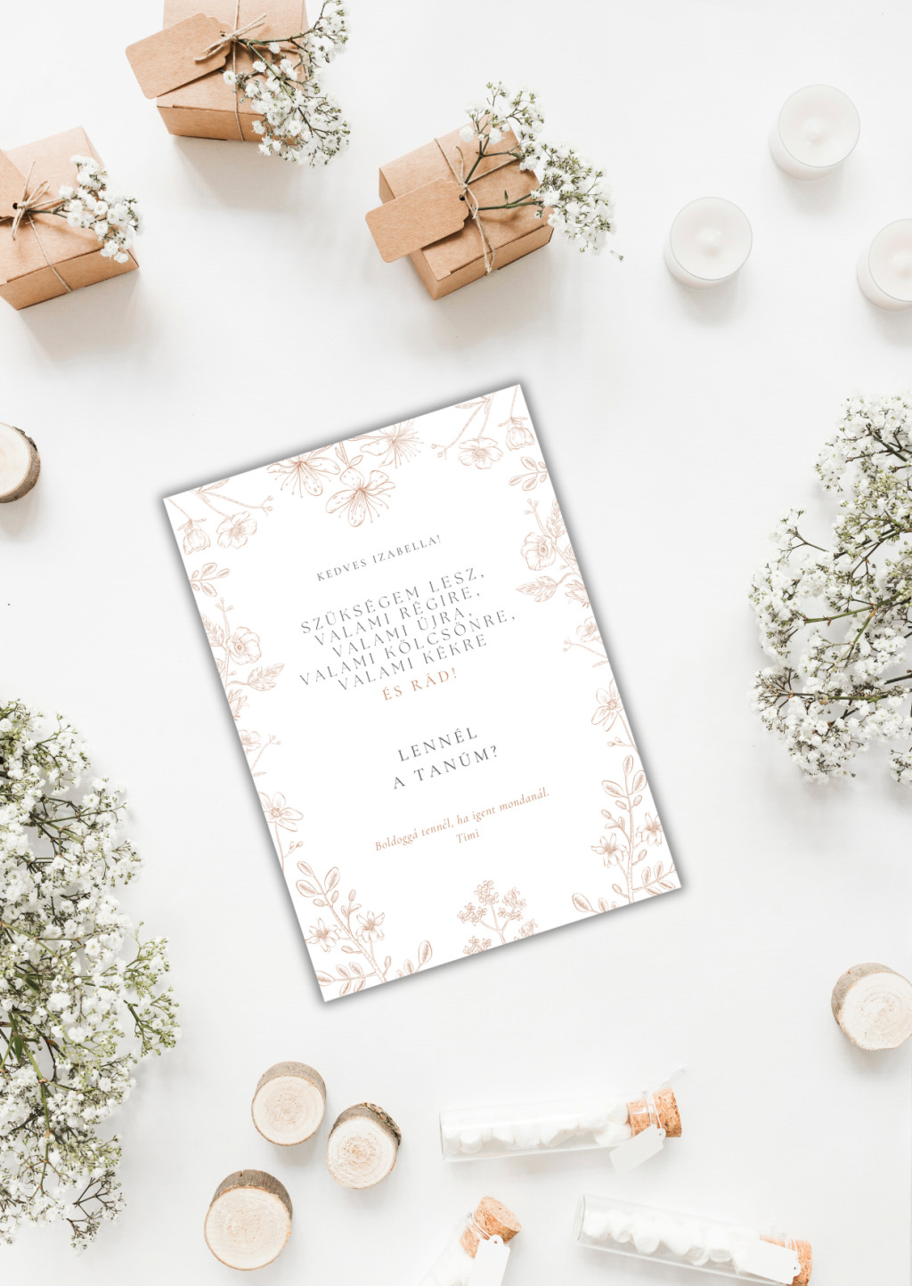 “Bézs virág keret” Tanú vagy Koszorúslány felkérő kártya + boríték A6