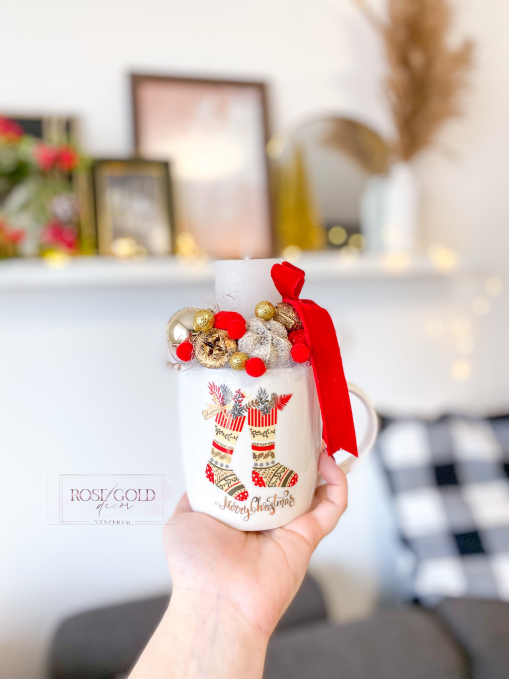 Karácsonyi bögre, gyertyával 15 cm