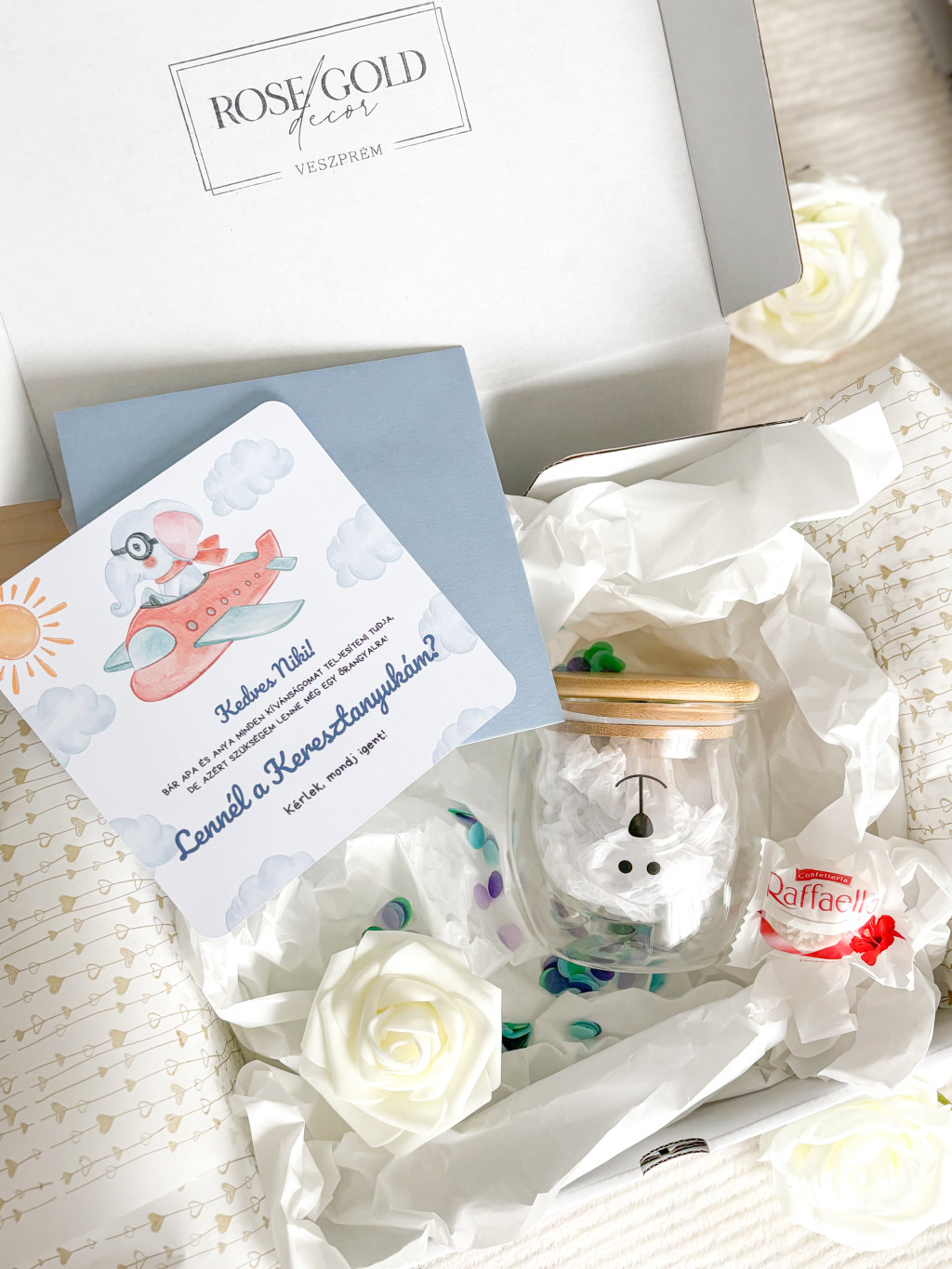 Keresztszülő felkérő PRÉMIUM MACIS POHARAS box (1 vagy 2 főre)