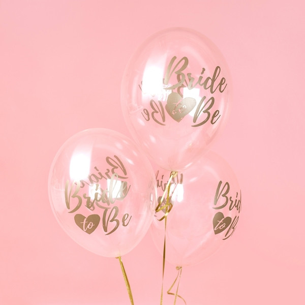 BRIDE TO BE LATEX LUFI, ÁTLÁTSZÓ, ARANY FELIRAT, 5 DB/CSOMAG