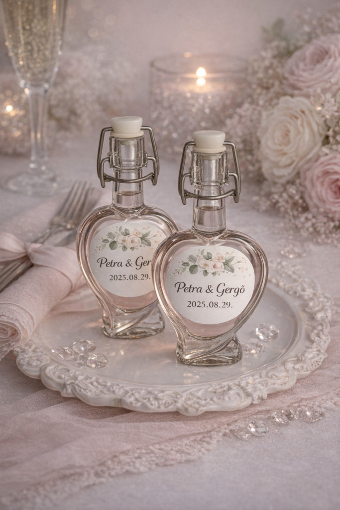 “SZÍV” CSATOS, PÁLINKÁS MINI ÜVEG 0,04 LITERES ÜVEGPALACK, ESKÜVŐRE KÖSZÖNETAJÁNDÉK