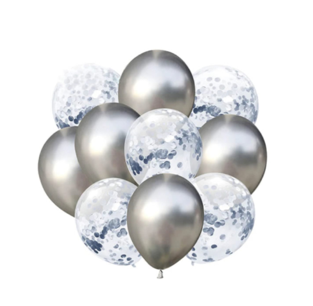 LUFI CSOMAG, EZÜST ÉS EZÜST KONFETTIS, 30CM, 10 DB/CS