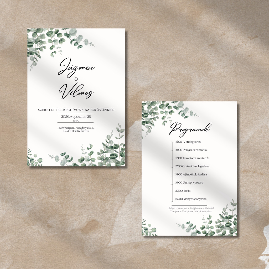 Esküvői meghívó – 2 oldalas, egyedi és személyre szabható