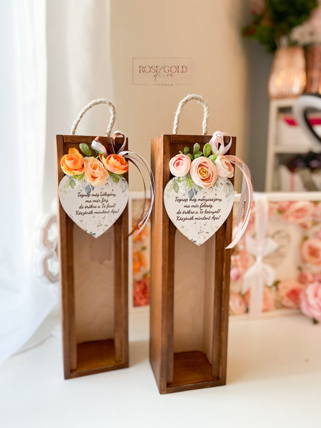 MINDEGYIK BORTARTÓ MÁR KÉRHETŐ A MENYASSZONY VAGY VŐLEGÉNY KERESZTNEVÉVEL (fekete matricával), ÍGY EGYEDIVÉ TEHETŐ A BORTARTÓ. EZT MINDENKÉPP JELEZD FELÉM, HA KÉRSZ RÁ. AMENNYIBEN NEM ÍROD MEG, ÚGY AUTOMATIKUSAN NÉV NÉLKÜL KÉSZÍTEM.