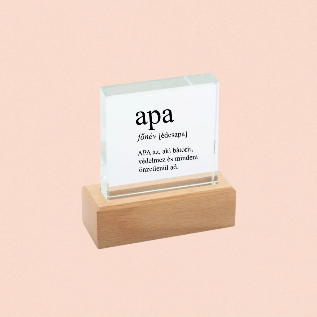 Örömanya / Örömapa üveg-fa trófea, 100×108×40 mm - SZÜLŐKÖSZÖNTŐ AJÁNDÉK PRÉMIUM