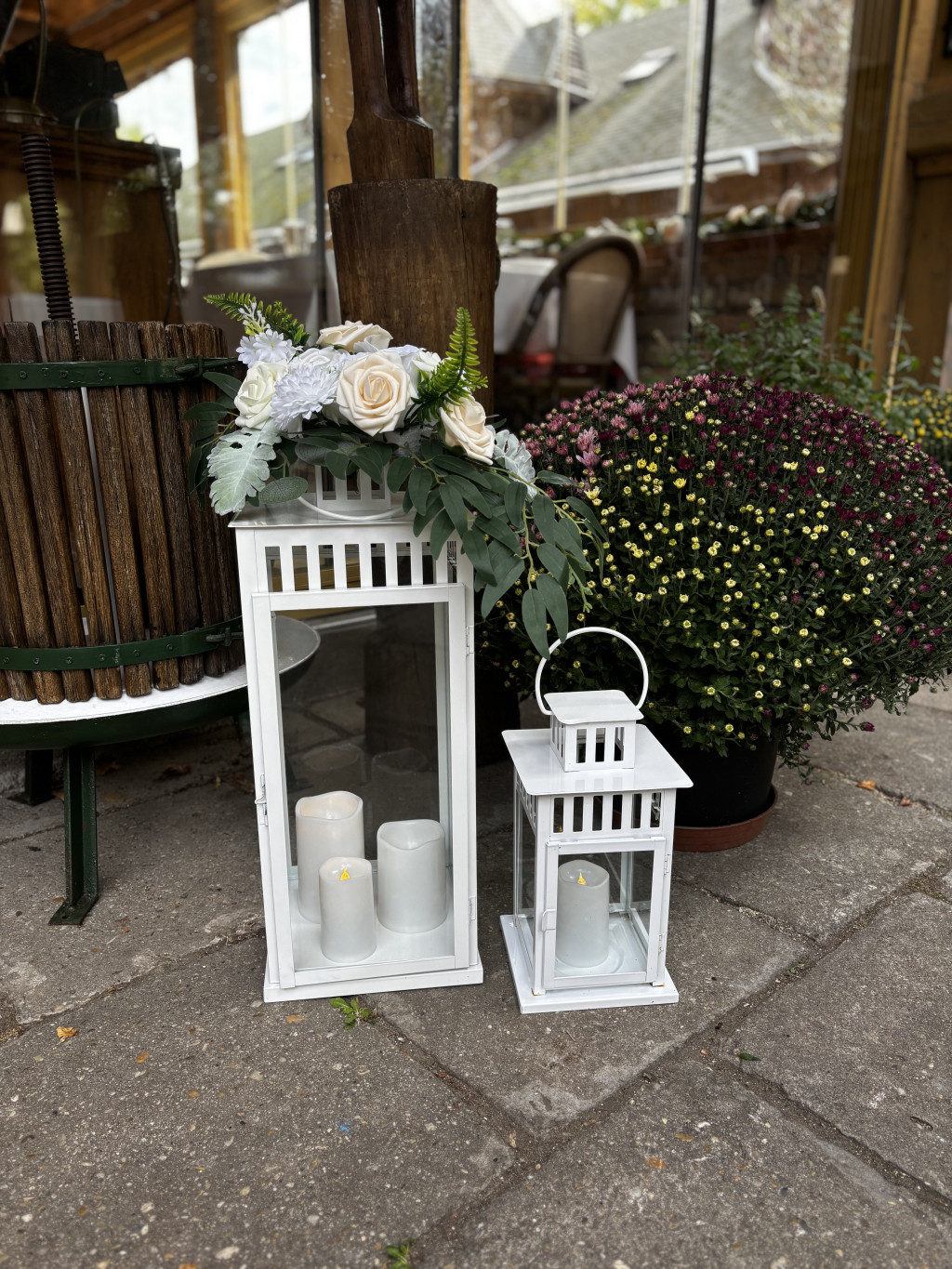 Fehér lámpás szett / 2 db led gyertyákkal - BÉRELHETŐ VESZPRÉMBEN