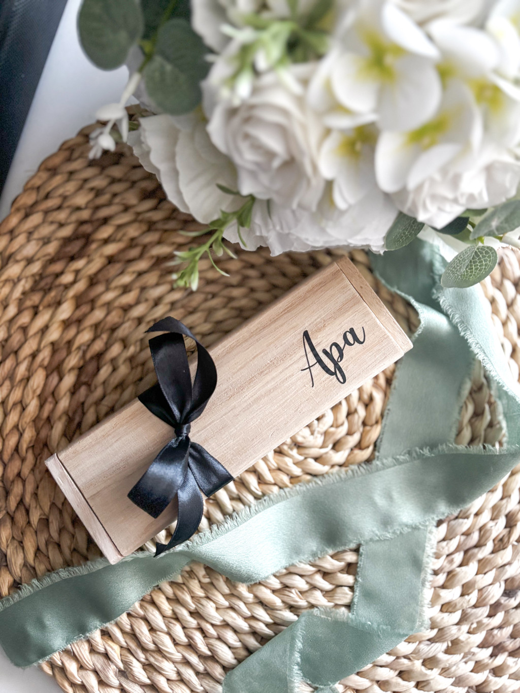 A sörnyitó dekoratív fa dobozban érkezik, amelynek külsején „Apa” felirat található, valamint szatén szalaggal átkötve, így az ajándék azonnal átadható.