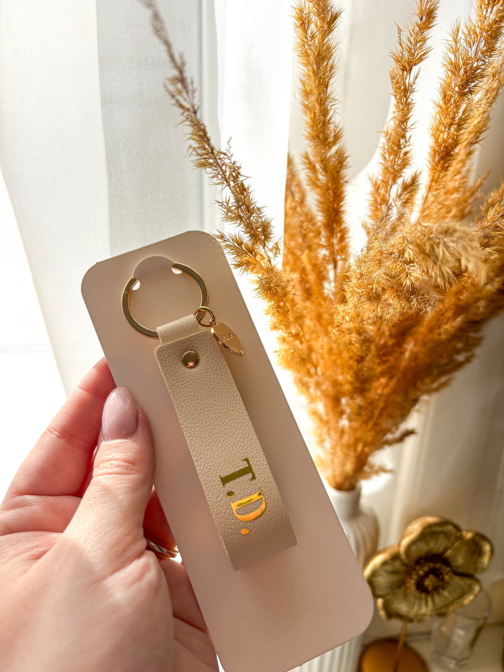 SZÍJ kulcstartó monogramos, egyedi ajándék