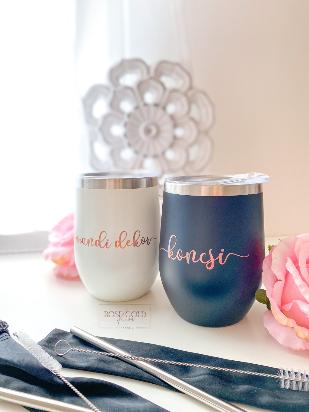 Tumbler Duplafalú, thermo pohár műanyag ivófedéllel, 350 ml - egyedi designnal