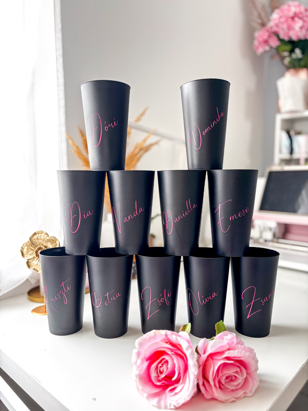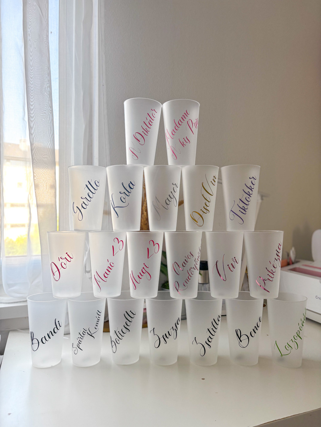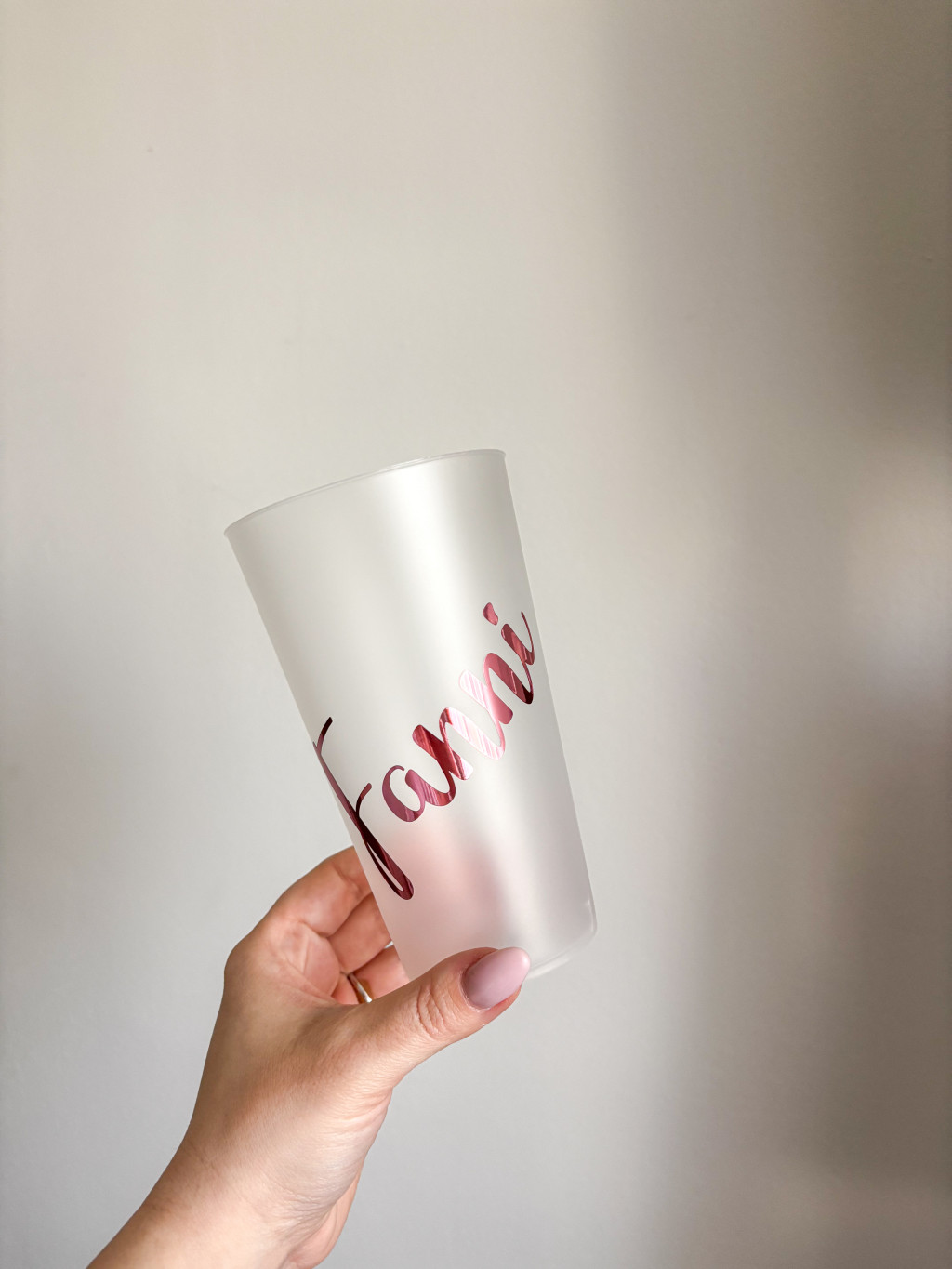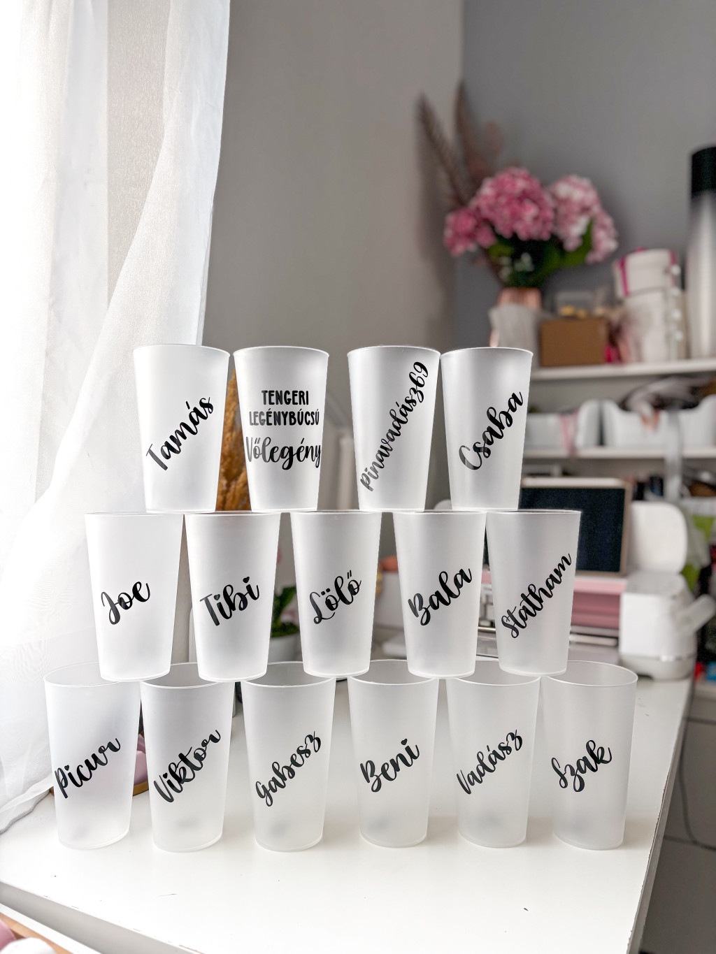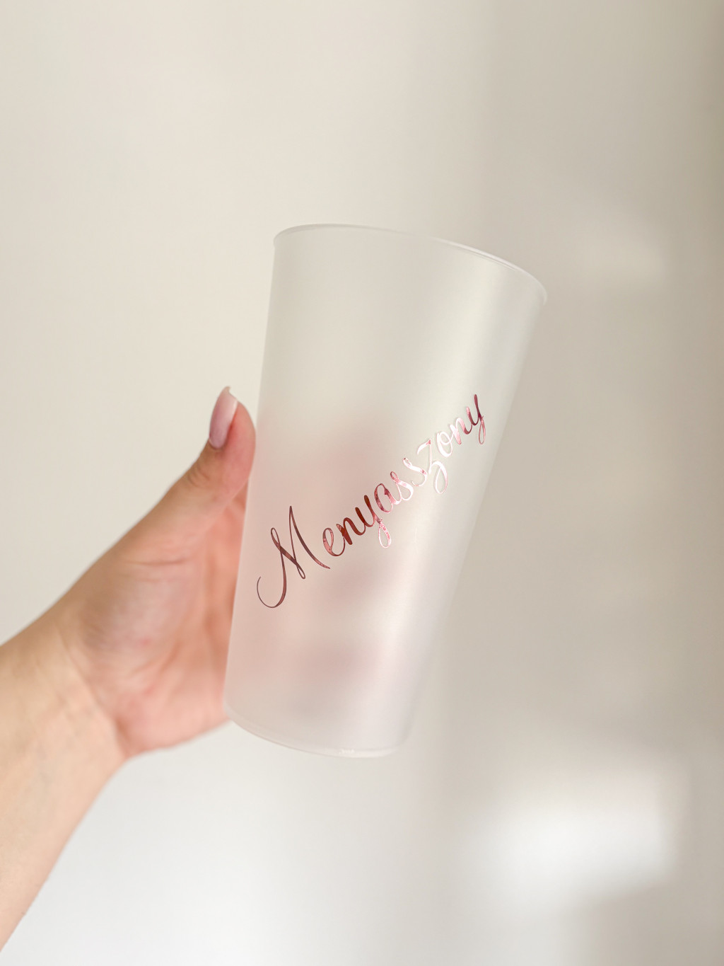 500 ml műanyag pohár, többféle betűtípussal, keresztnévvel.