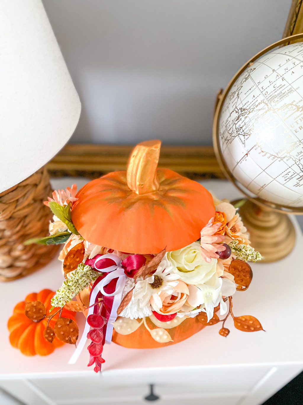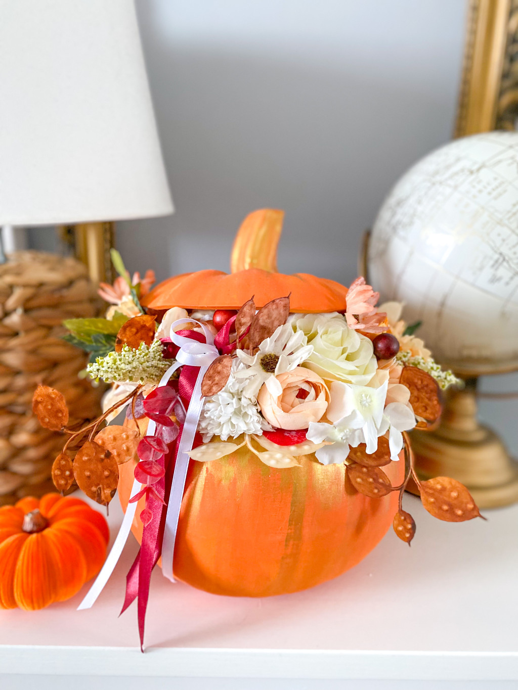 28x25 cm, kézzel festett kerámia tök, gyönyörű Selyemvirágokkal díszítve!