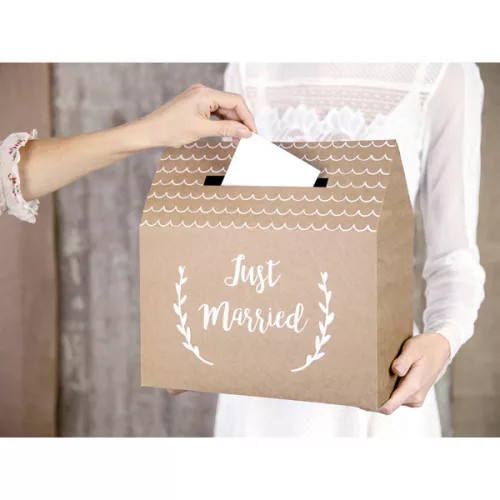 Ajándék-gyűjtő doboz, Just Married felirattal.