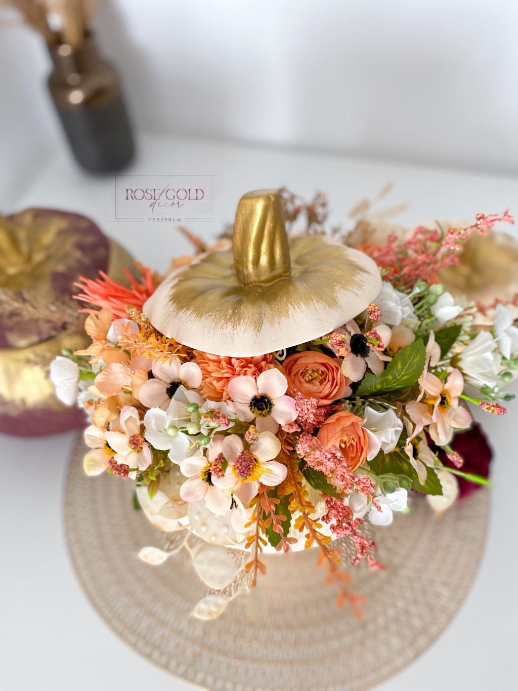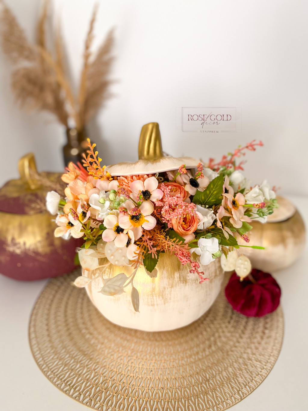 20x25 cm, kézzel festett kerámia tök, gyönyörű Selyemvirágokkal díszítve!