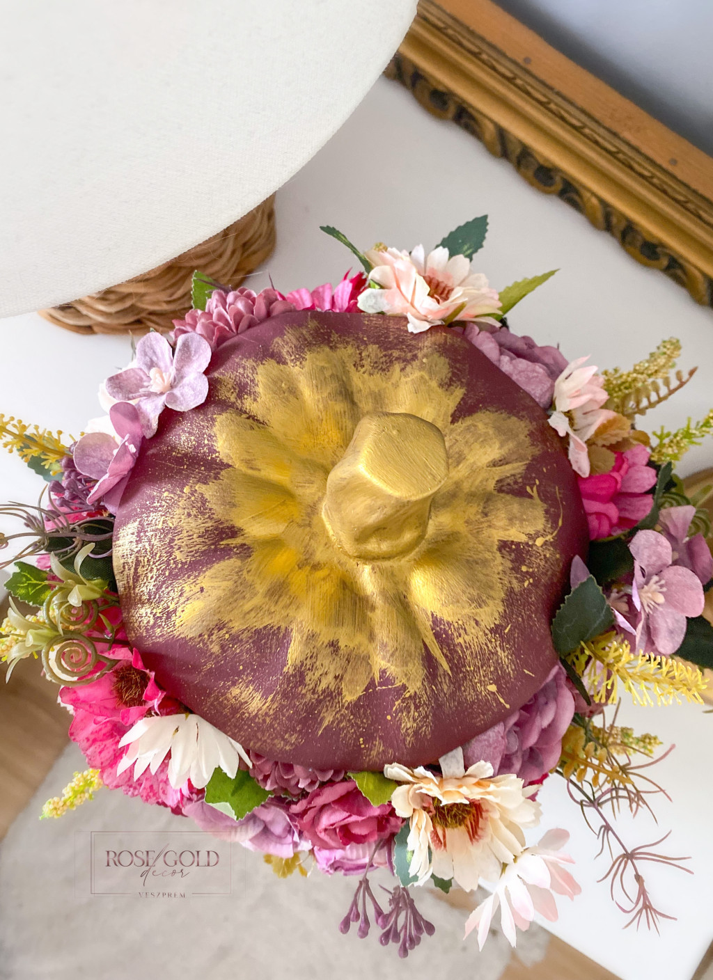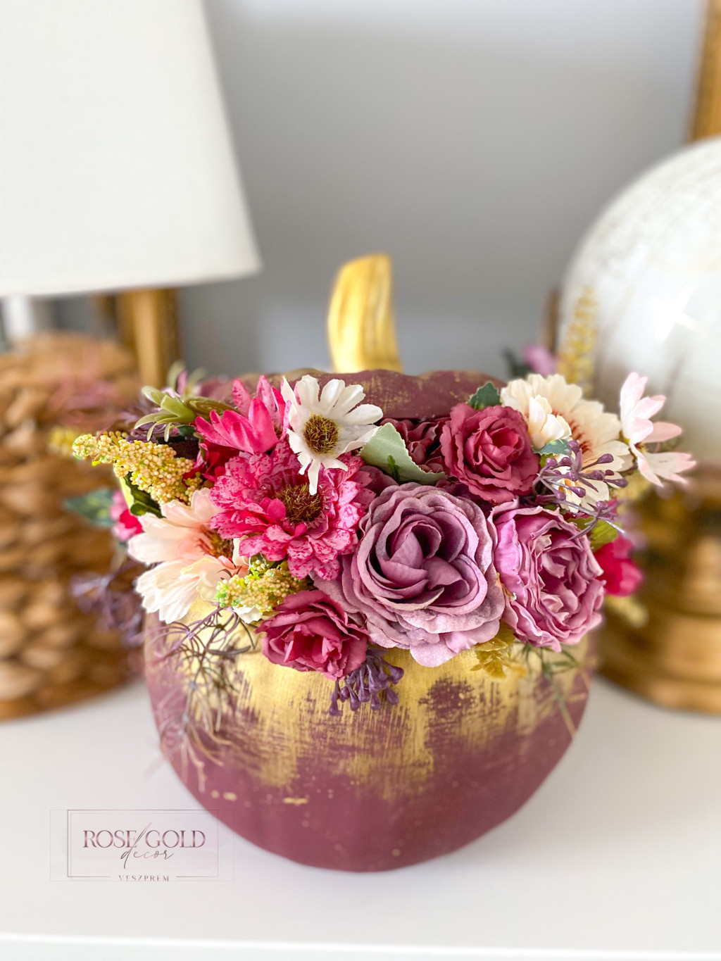 28x25 cm, kézzel festett kerámia tök, gyönyörű Selyemvirágokkal díszítve!