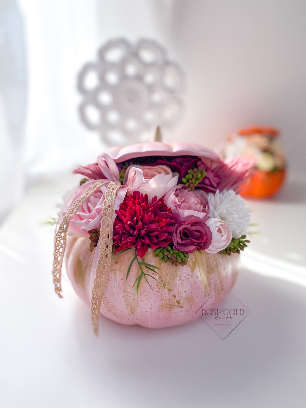 20x20 cm, kézzel festett kerámia tök, gyönyörű Selyemvirágokkal díszítve!
